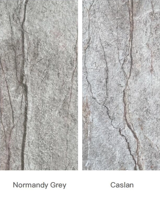 Это гибкий камень MCM, который даёт эффект натурального камня, но монтируется быстрее и легче переносит сложные поверхности. Форматы: 1200×600; 2400×1200; 3000×1200. Толщина: 3–5 мм.